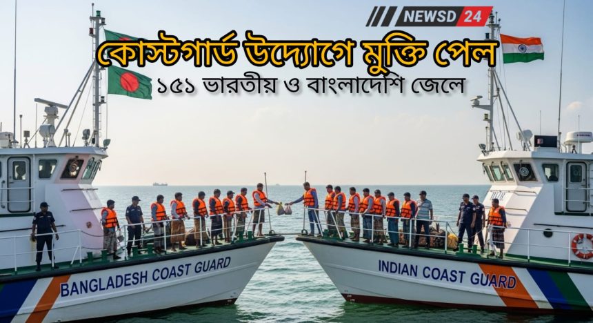 ভারত ও বাংলাদেশের মধ্যে সমুদ্র সীমান্তে আটক জেলেদের মুক্তির অংশ হিসেবে দুই দেশ পারস্পরিকভাবে ১৫১ জন জেলেকে বিনিময়ের মাধ্যমে হস্তান্তর করেছে। কোস্টগার্ডের সমন্বয়ে সীমান্তবর্তী আন্তর্জাতিক জলসীমায় এ কার্যক্রম সম্পন্ন হয়। এতে ভারতের ২৩ জন এবং বাংলাদেশের ১২৮ জন জেলে মুক্তি পেয়েছেন।